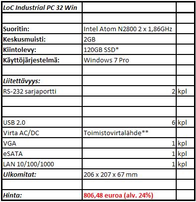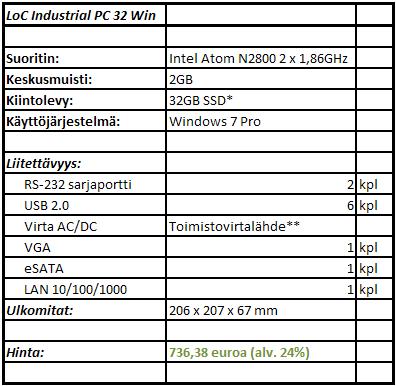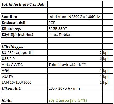 Seuraavassa esitetään ainoastaan yleisimpien peruskonfiguraatioiden hinnoittelu. Tarjoamme myös muita konfiguraatioita erilaisiin asiakastarpeisiin ja projektikokonaisuuksiin.